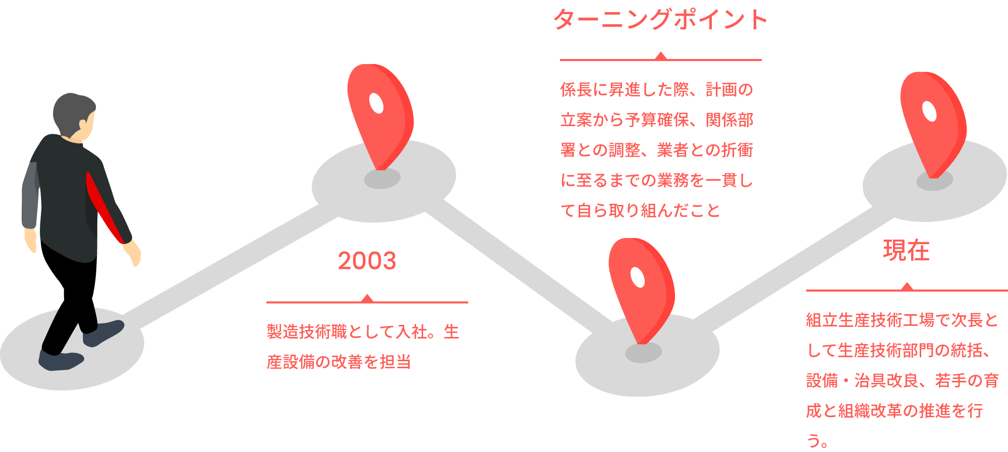 設備の仕様検討やコスト低減の検討において、自分のアイデア一つで数十万から百万円のコスト削減を実現できることに大きなやりがいを感じます。また、設計や工事で発生する様々なトラブルに対し、対策を検討し各所と調整して解決していく過程に面白みを感じます。前職での「性能が良くても量産できなければ意味がない」という考え方は、作業者にとって安全で使いやすい設備検討に活きています。